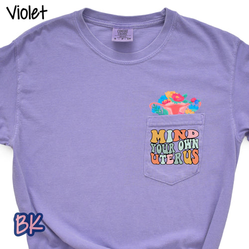 Mind Your Own Uterus Violet Pocket Tee