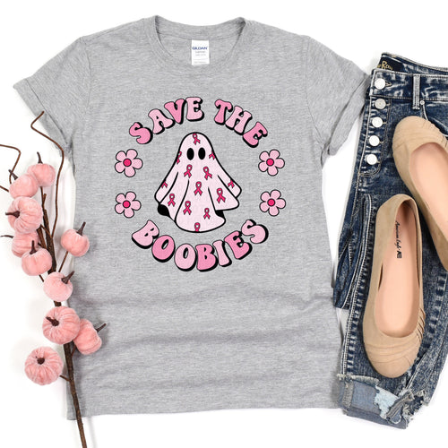 Save The Boobies Breast Cancer Awareness Grey Tee