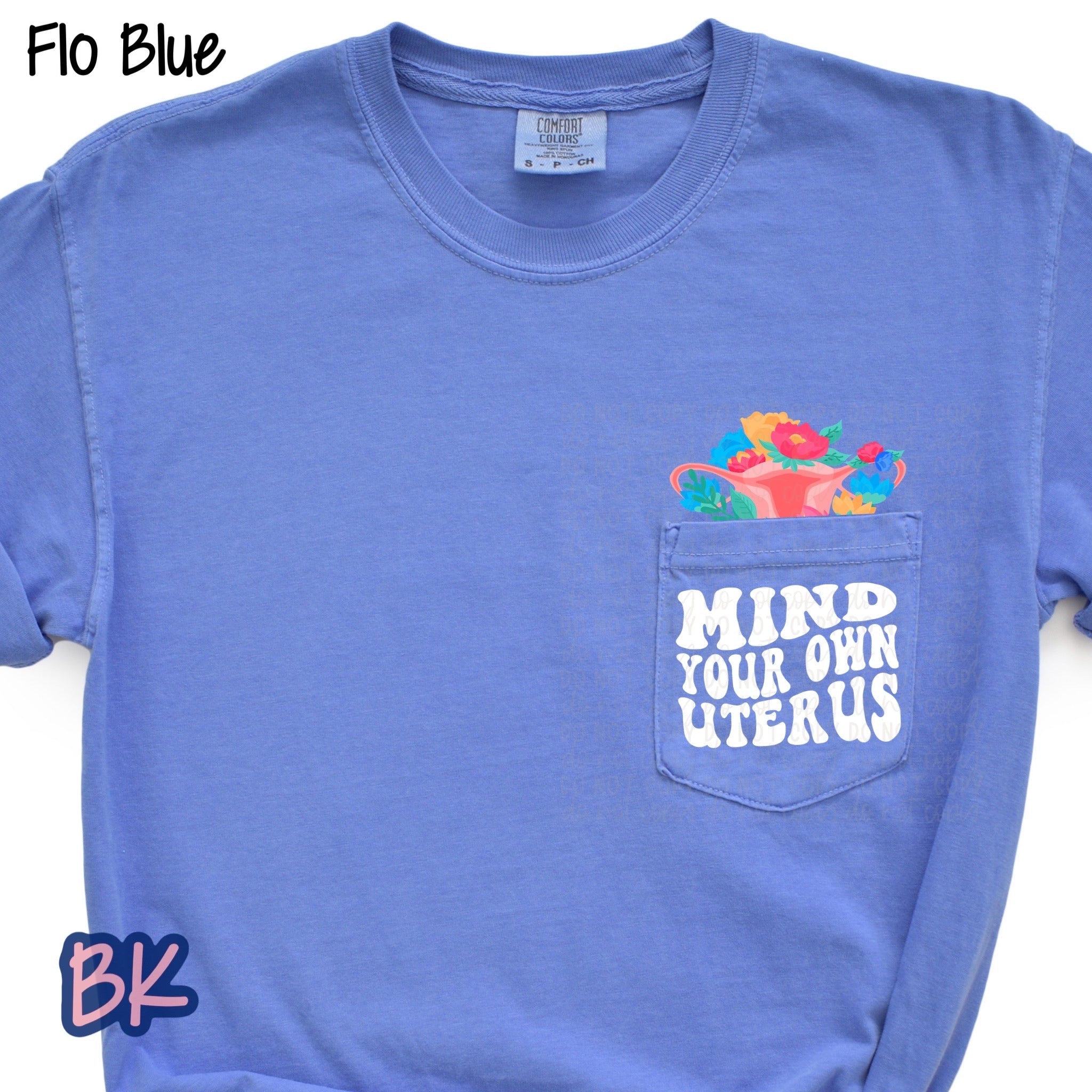 Mind Your Own Uterus Flo Blue Pocket Tee